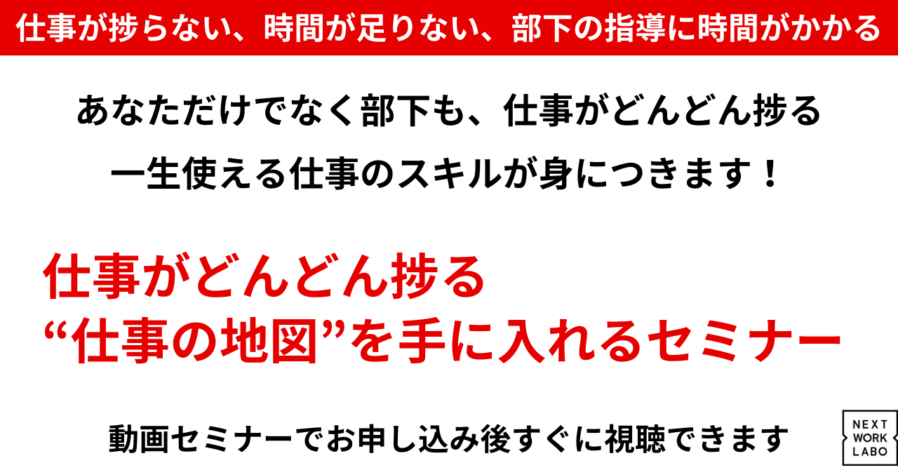 なので、仕事が多くて時間が足りない、とにかく仕事が終わらないあなたが、どんどん仕事が片付いて、部下にも仕事がどんどん振れるようになるためにこのセミナーを提供することにしました。
